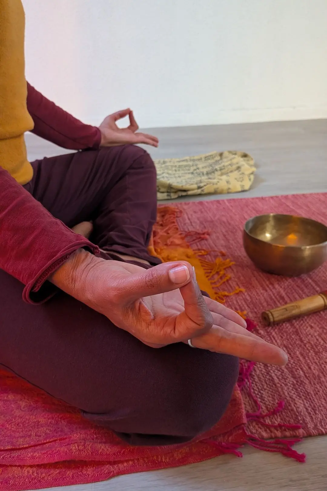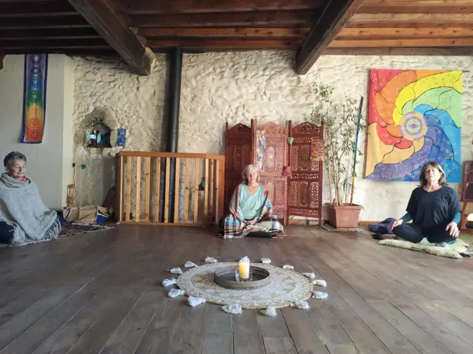 Selon les inspirations, il y a des visualisations, support bougie (tratak), respirations (pranayamas) textes lus, mudras (gestualité des mains), et mantras…En douceur, chacun pénètre dans son corps-temple et contemple ce qui peut émerger.
