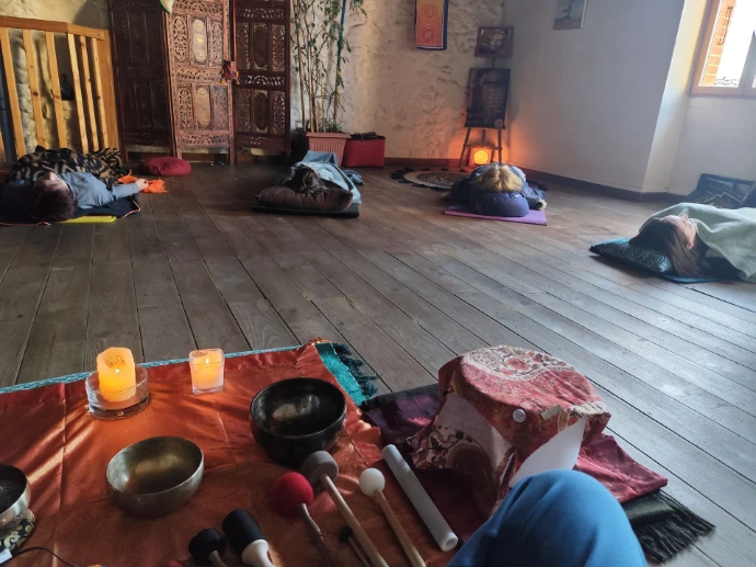 Sous les effets des vibrations sonores, de résonnance, d'harmoniques, de suites mélodiques, de fréquences, les systèmes physiologiques (respiratoire, digestif et surtout neurologique) rentrent en résonnance et offrent un temps de relaxation profonde par un lâcher prise total, soutenant le processus d'auto-guérison de la personne.